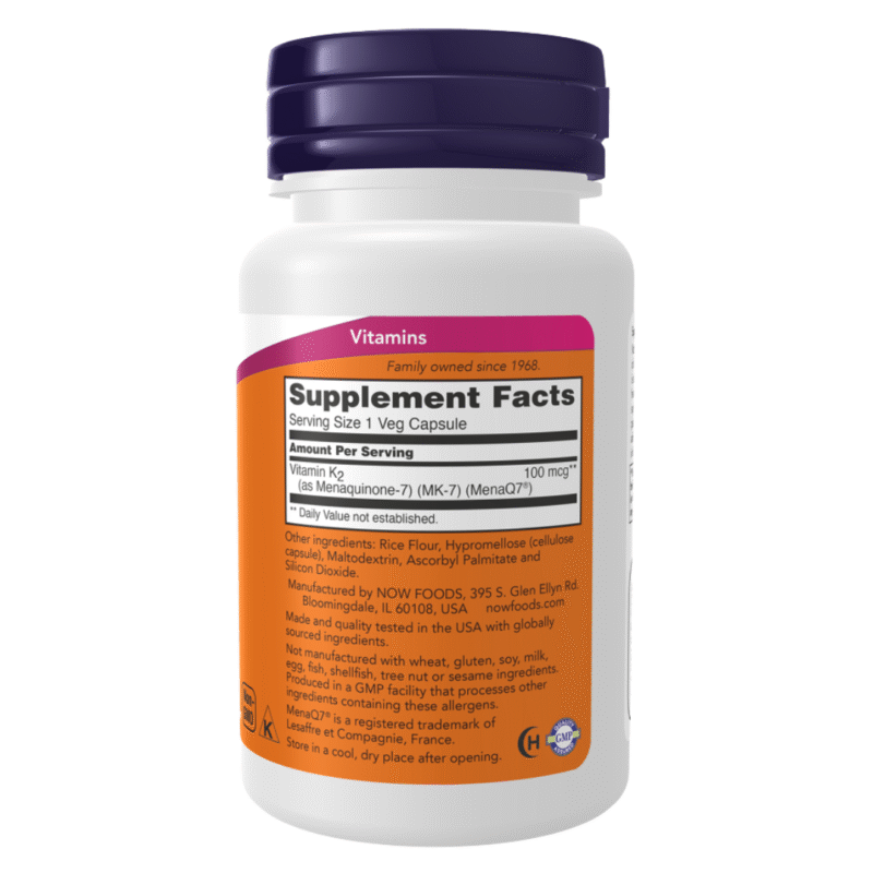 NOW Foods, MK-7 Vitamin K-2 , 100 mcg, 60 Veg Capsules