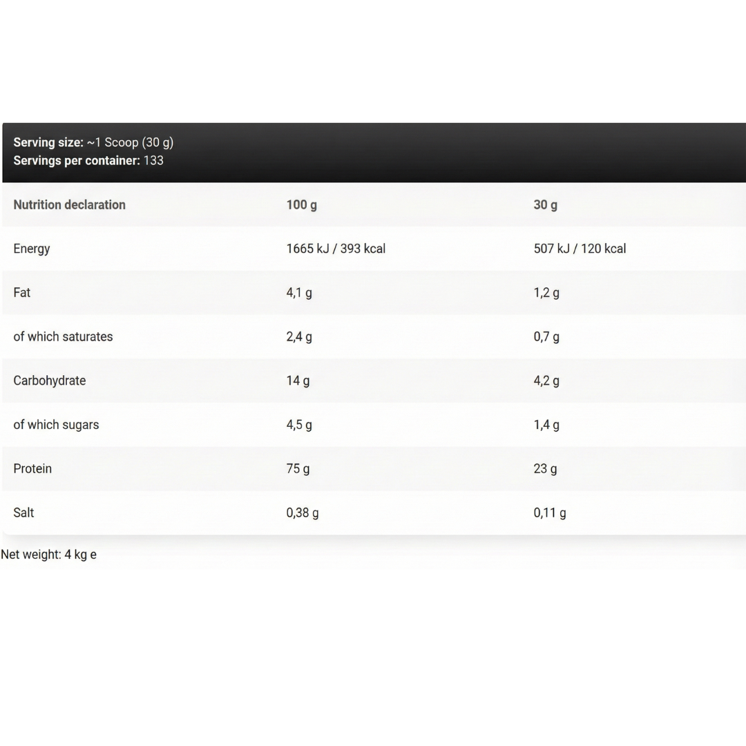 Recommended use: Mix ~1 scoop of powder (30 g) with 200-250 ml water or milk. Use before or immediately after workout.
