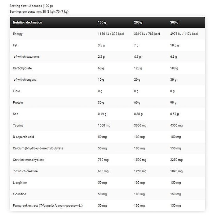 Kevin Levrone Mass Gainer provides an anabolic mass stimulator blend. Fenugreek and D-aspartic improve testosterone levels and increase muscle endurance. Moreover, taurine helps you delay muscle fatigue and enhance muscle contraction. This makes it one of the best weight gainer shakes.