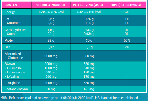Mix 1 scoop (34g) with water or milk immediately after your workout to kickstart recovery, or enjoy anytime during the day to meet your daily protein requirements.