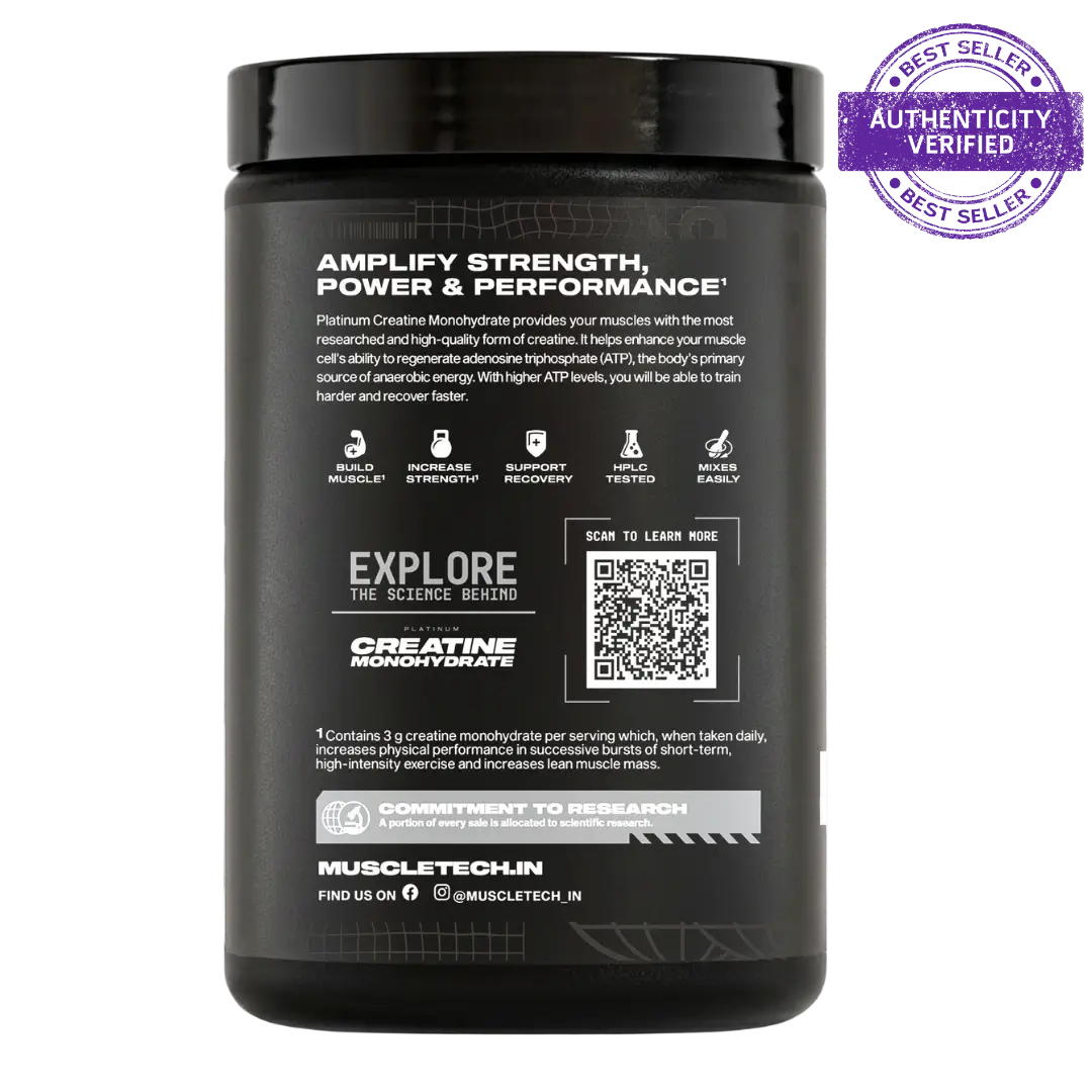 Platinum Creatine Monohydrate provides your muscles with the most researched and high-quality form of creatine. It helps enhance your muscle cell’s ability to regenerate adenosine triphosphate (ATP), the body’s primary source of anaerobic energy. With higher ATP levels, you will be able to train harder and recover faster.