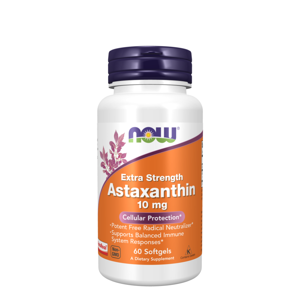 Astaxanthin is a naturally occurring carotenoid that, due to its unique structure, performs an important role in cellular free radical protection and healthy immune system responses.* NOW® Astaxanthin is derived from Non-GMO Haematococcus pluvialis microalgae.