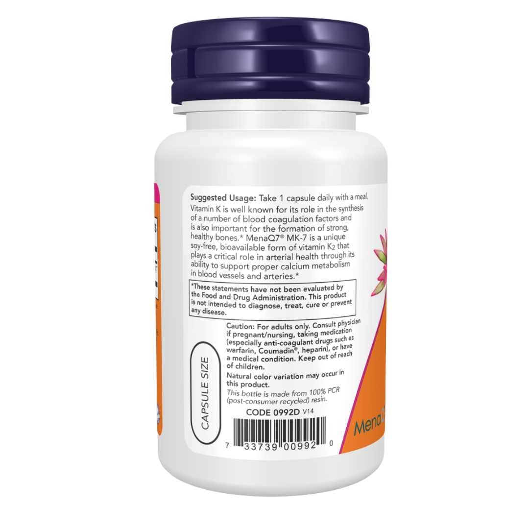 NOW Foods, MK-7 Vitamin K-2 , 100 mcg, 60 Veg Capsules