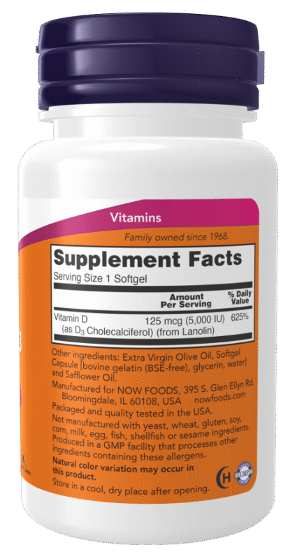 Now foods Vitamin D3 5000 IU 120 Soft gels
